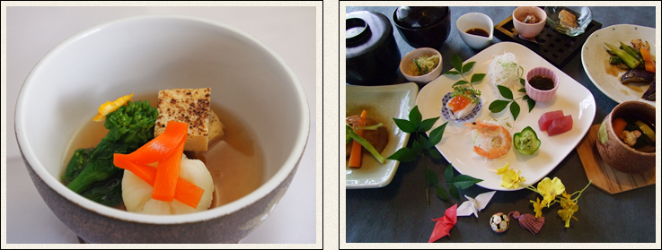 日本の伝統である懐石料理には、四季をおりおりの食材を、更に楽しんで頂ける技術がつまっておりますので、食材を活かし、皆様の目の前に四季の贈り物を届けさせて頂けるお手伝いをさせて頂いておりますので、旬のものを、ぜひお楽しみ頂ければ幸いです。